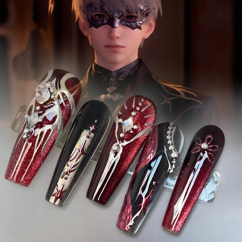 ✨ Inspired by Xavier, love, and the dreamy world of DeepSpace, this nail art set captures the elegance and mystery of Shen Xinghui. Each piece reflects his calm charm and romantic allure, perfect for fans who want to keep a piece of that universe at their fingertips. Whether you're gifting or treating yourself, these nails are a cosmic love letter you can wear. 💫